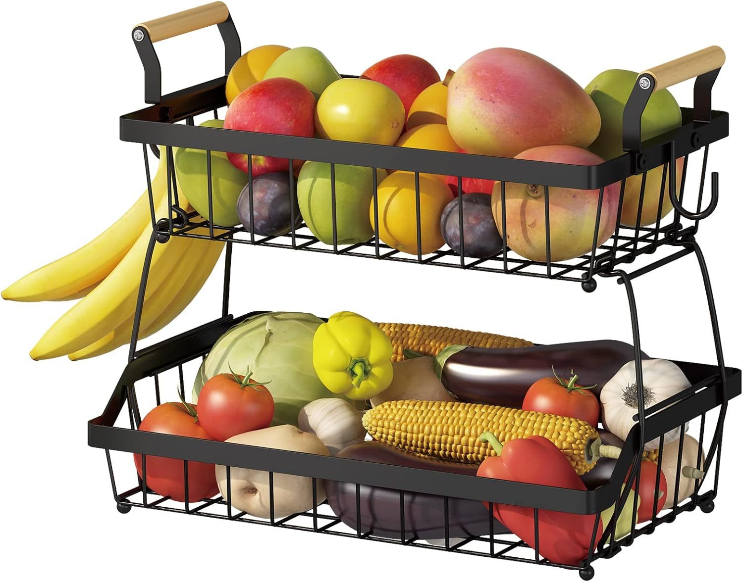 2 Tier Fruit Basket Bowl Farmhouse with Side Hooks for Kitchen Countertop 2 Tier Fruit Basket Bowl Farmhouse with Side Hooks for Kitchen Countertop 2 Tier Fruit Basket Bowl Farmhouse with Side Hooks for Kitchen Countertop