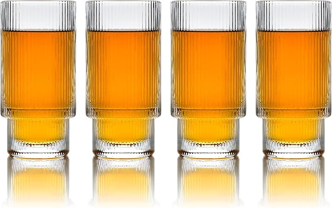 Greenline Goods Ripple Drinking Glasses - 12 oz Modern Kitchen Glassware Set Unique Vintage Cups For Weddings, Cocktails Or Modern Bar - Set of 4 Greenline Goods Ripple Drinking Glasses - 12 oz Modern Kitchen Glassware Set Unique Vintage Cups For Weddings, Cocktails Or Modern Bar - Set of 4
